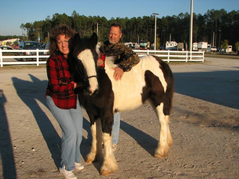 He is trained several times a week and is building great muscle and tone although Conner has a very natural athletic well muscled build. He is still a young colt in his head and as sweet as he has ever been. He has a double mane and the absolute thickest solid black tail we have frankly ever seen on a Gypsy.